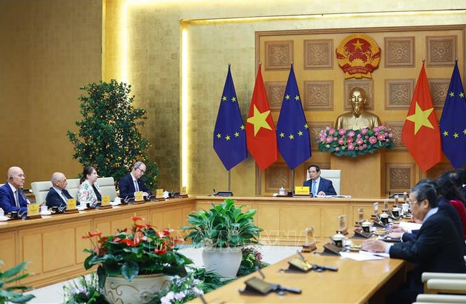 Thay mặt các nước EU, Đại biện lâm thời EU tại Việt Nam Rafael De Bustamante cảm ơn Thủ tướng về cuộc gặp gỡ ý nghĩa, chúc mừng thành công của Đại hội XIV của Đảng và đánh giá cao những thành tựu phát triển kinh tế – xã hội của Việt Nam. Ông khẳng định Việt Nam là đối tác quan trọng của EU tại khu vực Ấn Độ Dương - Thái Bình Dương và trong ASEAN, đồng thời nhấn mạnh EU là đối tác tin cậy của Việt Nam và mong muốn tiếp tục làm sâu sắc quan hệ đối tác với Việt Nam trên tất cả các lĩnh vực.