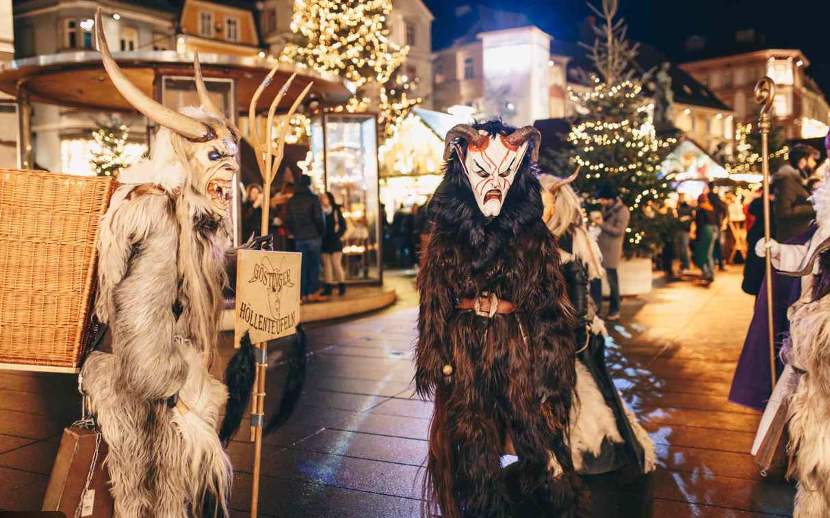 Krampuslauf – các cuộc diễu hành Krampus – thường diễn ra vào tối 5/12 tại nhiều thị trấn vùng núi Alps. Những người tham gia hóa trang thành Krampus, diễu hành qua các con phố trong ánh đuốc và tiếng chuông vang dội, tạo nên khung cảnh vừa rùng rợn vừa đầy cuốn hút. Dù có vẻ “đáng sợ” với du khách lần đầu, Krampuslauf thực chất là một nghi lễ dân gian nhằm xua đuổi điều xấu, chào đón mùa đông và đánh dấu khởi đầu mùa lễ hội.